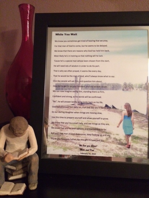 The poem was titled, “While You Wait” and typed on a picture printout my parents had taken of me months prior. And the figurine was a representation of the man of God my dad had been praying for me.